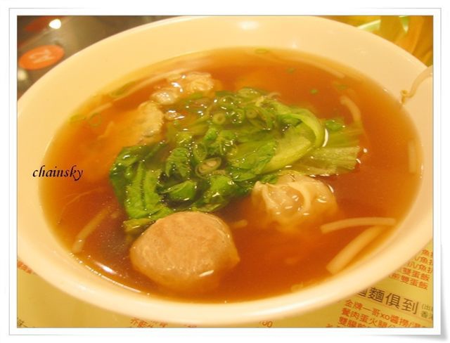 招牌港式手工四寶湯($90)。四寶有水餃、雲吞、牛筋丸、魚蛋。湯看起來滿清淡的,可是喝起來很鮮美,很有味道很香,四寶的口感都不錯,