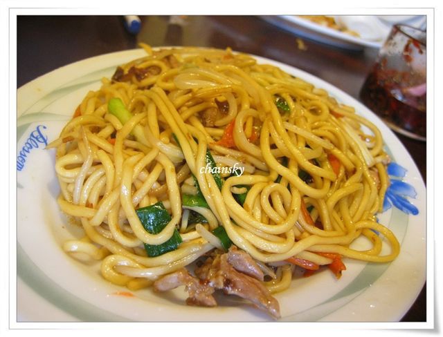 炒麵。好吃,跟一般外面的油麵不太一樣,口感也不一樣,而且沒有燒焦,哈哈。這個好吃。