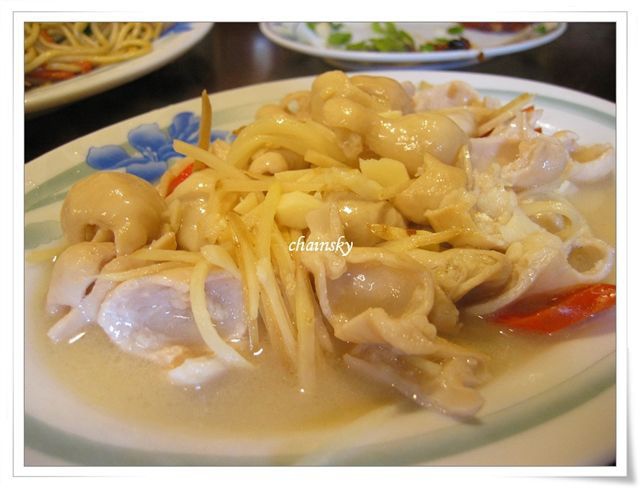 薑絲炒大腸。吃客家菜必點的一道。不會太酸,大腸處理的很乾淨,很有嚼勁。